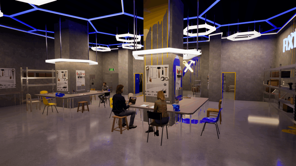 Renovace prostoru paláce Dunaj v Liberci. Mou největší inspirací bylo repair café (https://www.repaircafe.org/en/) které má mnoho poboček po celém světě, bohužel ani jednu zde, ale brzy by měla být otevřena jedna v Holešovicích v Praze. Probíhaly zde pouze workshopy, ale nemají pevné místo na provoz. A využití právě prostor paláce Dunaj by byla skvělá příležitost k realizaci. Ve stručnosti: kdokoliv přijde, opraví si rozbitou věc s pomocí zaměstnanců, a přitom se občerství dobrou kávou.