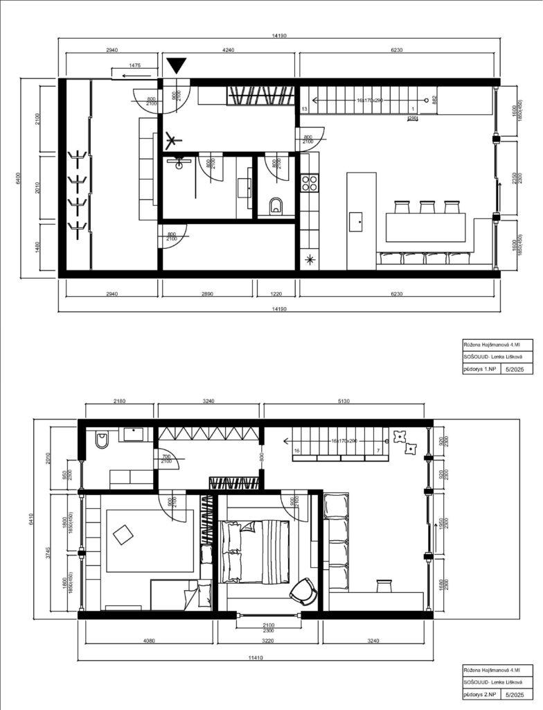 Celý návrh vyvažuje estetiku s funkčností a útulnost s otevřeností. Cílem bylo vytvořit místo, kam se člověk rád vrací. Inspiraci jsem čerpala od českých designérů a studií jako Markéta Cajthamlová, Ateliér 111, Schwestern, Simona Fišerová a Markéta Bromová, kteří skvěle propojují tradici s moderním designem. V rámci práce jsem také navrhla produkt KLIK – duet dvou stoliček, které se vzájemně doplňují tvarem i barvou. Tyto jednoduché, ale hravé kusy nábytku do sebe zapadají jako dílky skládačky, a přitom samostatně fungují jako plnohodnotné solitéry. Barevný kontrast zdůrazňuje jejich vzájemnou interakci, přičemž „kliknutí““ při spojení přináší moment překvapení a hravosti.