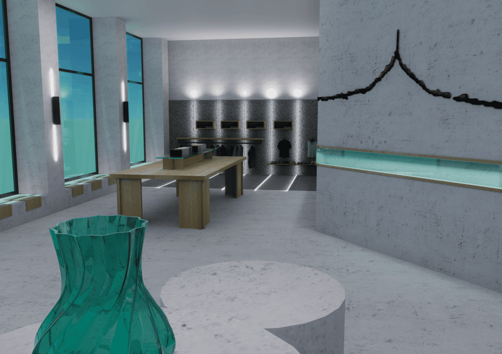 Dispozice obchodu je navržena tak, aby pohyb zákazníka působil přirozeně a intuitivně. Oblečení, doplňky i obuv jsou rozmístěny v logicky uspořádaných zónách, které vedou návštěvníka obchodem nenásilnou formou. Důraz je kladen na přehlednost, jednoduchost a celkovou harmonii prostoru. Vizuální klid podporuje pomalejší tempo pohybu, a tím i prostor pro větší vnímavost k detailům a samotné nabídce produktů.