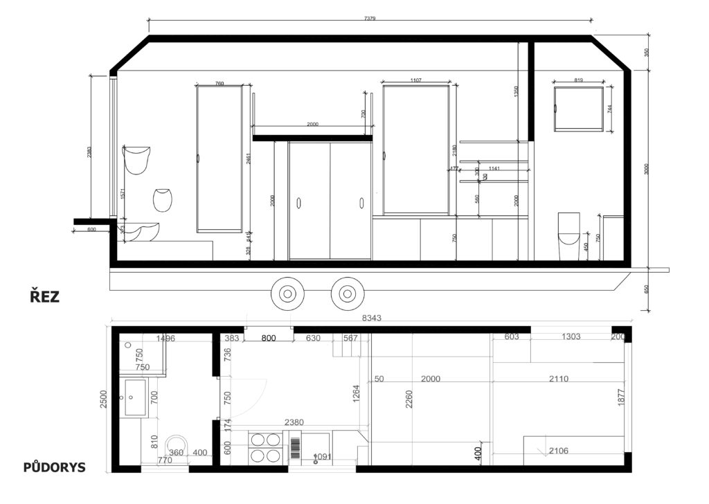 Hospodaření s odpadní vodou je řešeno pomocí kořenové čističky. Tiny house je navržen jako off-grid systém – elektřinu zajišťují solární panely umístěné na střeše. Má vlastní nádrž na pitnou vodu a bojler na její ohřev. Pro vytápění a dodatečnou izolaci jsem zvolila uhlíkové fólie a přímotopný radiátor.
