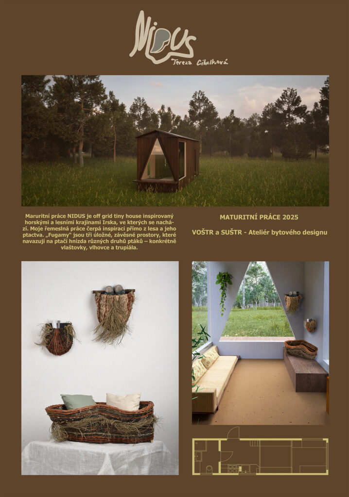 Tiny house Nidus se nachází v zalesněném horském prostředí v Ballynahinch v Irsku. Tento typ bydlení je oblíbený zejména u lidí, kteří rádi cestují a žijí dobrodružným životem. Horské okolí Ballynahinchu je charakteristické dlouhými kopcovitými svahy, protkanými potůčky a jezery. Představuje ideální místo pro páry i jednotlivce hledající klid a spojení s přírodou.