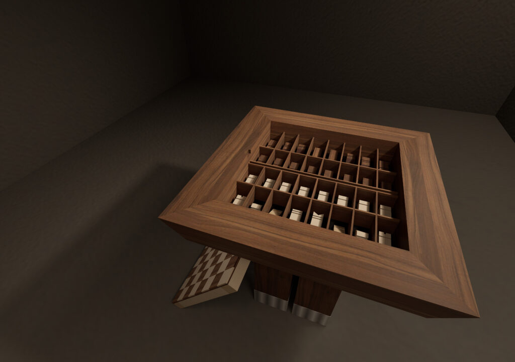 Tento stolek byl navržen speciálně pro herní kavárnu – prostor, kde si návštěvníci mohou zapůjčit deskové hry a strávit příjemný čas hraním. Chaturang tak spojuje estetiku, praktičnost a společenský rozměr. Díky kvalitnímu řemeslnému zpracování a odolným materiálům je vhodný pro veřejné prostředí, kde se stává nejen herní pomůckou, ale i výrazným interiérovým prvkem.