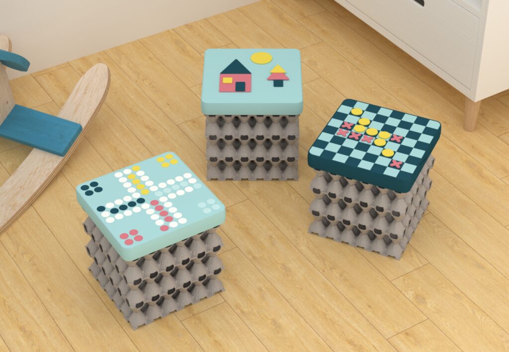 EGGO – hrací taburet z plat od vajec vznikl jako klauzurní práce na téma UPCYKLACE.