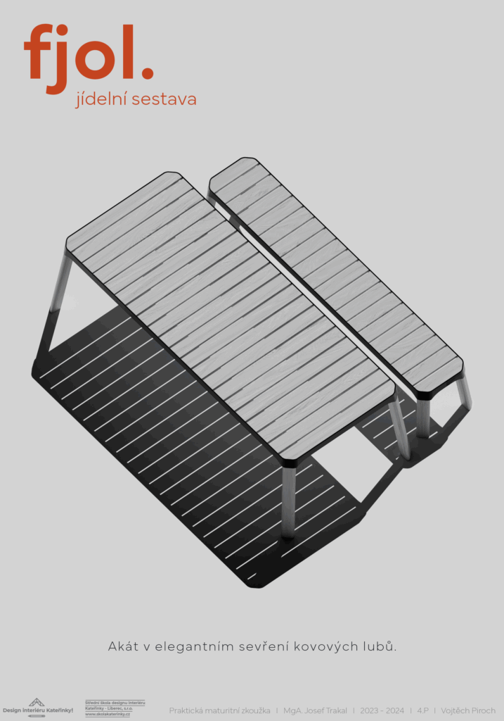 Fjol je moderní venkovní sezení navržené pro zahrady, školy i veřejná prostranství. Spojuje odolnost, praktičnost a jednoduchou montáž s moderním designem. Jeho konstrukce stojí na pevných akátových nohách a příčkách, které drží pohromadě kovové luby. Akát je dřevo, které přirozeně odolává povětrnostním vlivům, takže Fjol vydrží dlouhá léta bez potřeby chemické úpravy.
