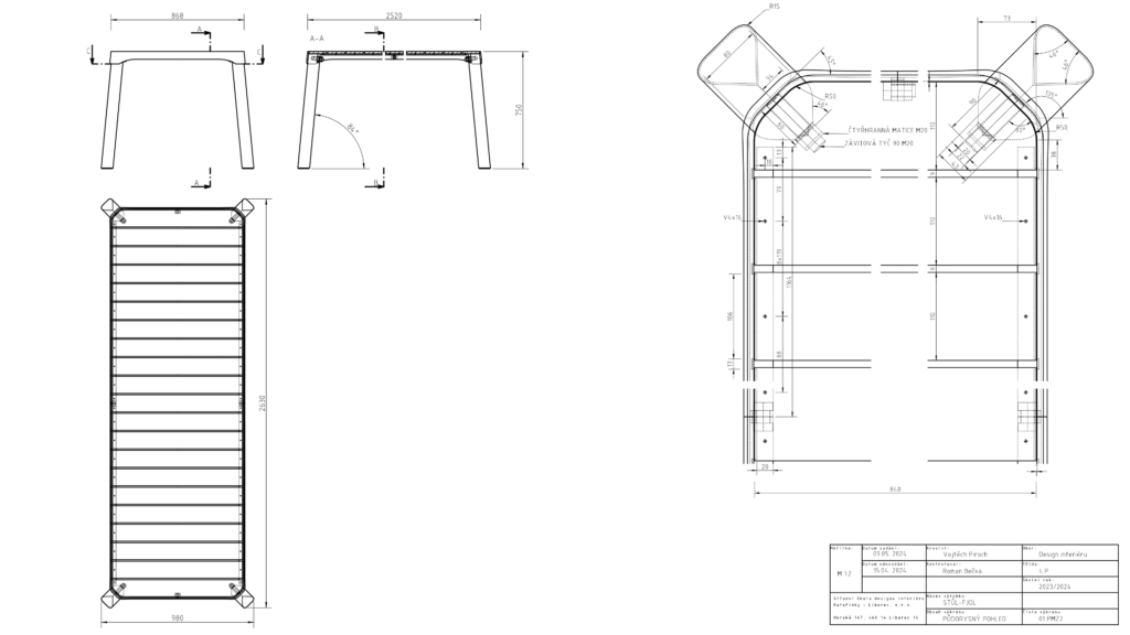 Zajímavostí jsou právě luby – skládají se ze čtyř rohových dílů, které jsou mezi sebou spojeny šrouby. Díky tomu jde sestavu snadno rozložit, opravit nebo znovu složit. Ideální řešení i pro sériovou výrobu.