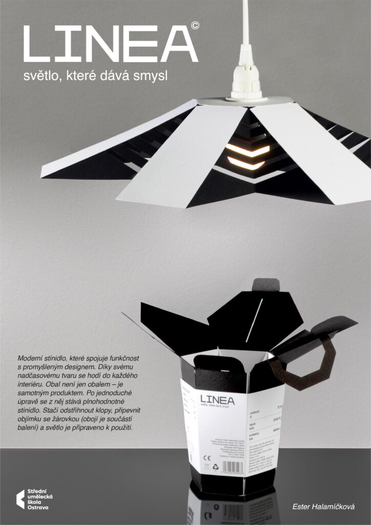 promyšleným obalem na žárovku a objímku. Spojuje v sobě produkt a obal