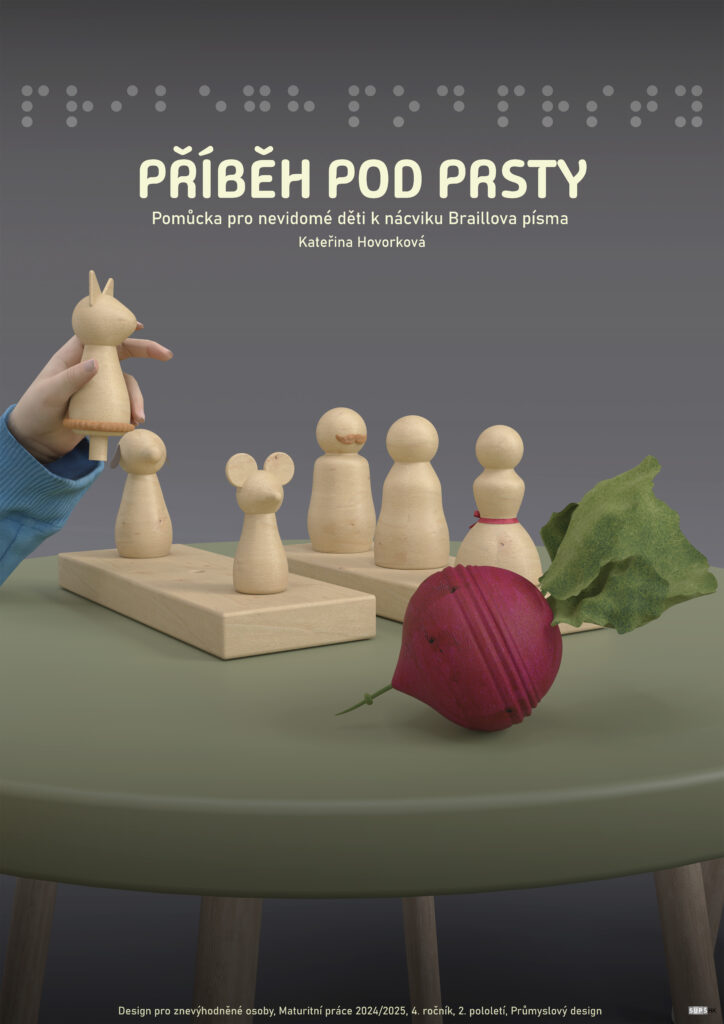 Jako zadání pro moji maturitní práci jsem zvolila Design pro znevýhodněné osoby. Navrhla jsem pomůcku pro nevidomé děti, pro nácvik Braillova písma.