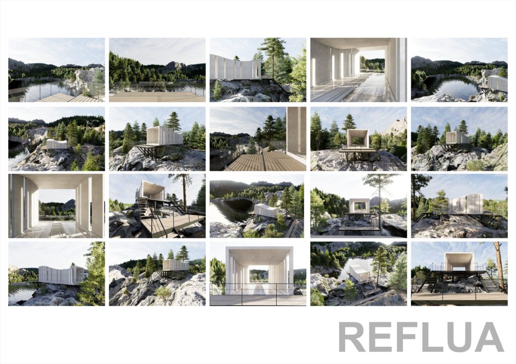 Multifunkční duchovní věž Reflua propojuje architekturu s meditativním prostorem. Nenabízí výhled do dálky, ale vnitřní vhled. Návštěvník bosky prochází tenkou vrstvou vody, jejíž proudění stimuluje smysly a zpomaluje vnímání. Betonová konstrukce působí klidně a přirozeně splývá s krajinou pískovny v Adršpachu. Ekologické technologie čištění vody a absence vizuálních rušivých prvků podtrhují inovativní, tichý charakter stavby. Projekt duchovní věže Reflua vznikl jako reakce na zadání vytvořit autorskou rozhlednu s multifunkčním využitím. Místo klasického výhledu do dálky nabízí stavba vnitřní ztišení, meditaci a symbolický návrat k sobě. Vědomý pohyb prostorem je podpořen chůzí bosky ve vodě – tenká vrstva proudící vody stimuluje smysly a zpomaluje vnímání. Tento neobvyklý prvek se stává nositelem celého prožitku.