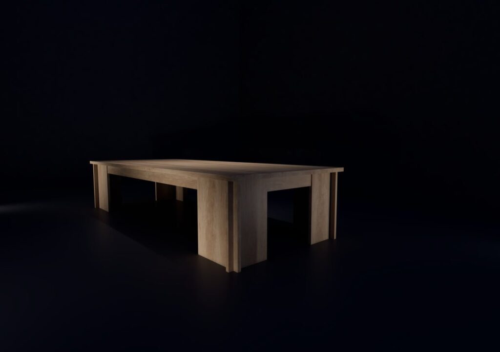 Výsledný návrh je tedy nejen odrazem mých osobních zkušeností a inspirací z Japonska, ale také pokusem o přenesení tamních hodnot do současného kontextu. Je to stůl, který reprezentuje klid, soustředění a respekt k tvaru. Objekt, který není okázalý, ale nese v sobě hlubší vrstvy smyslu, ticha a úmyslu.